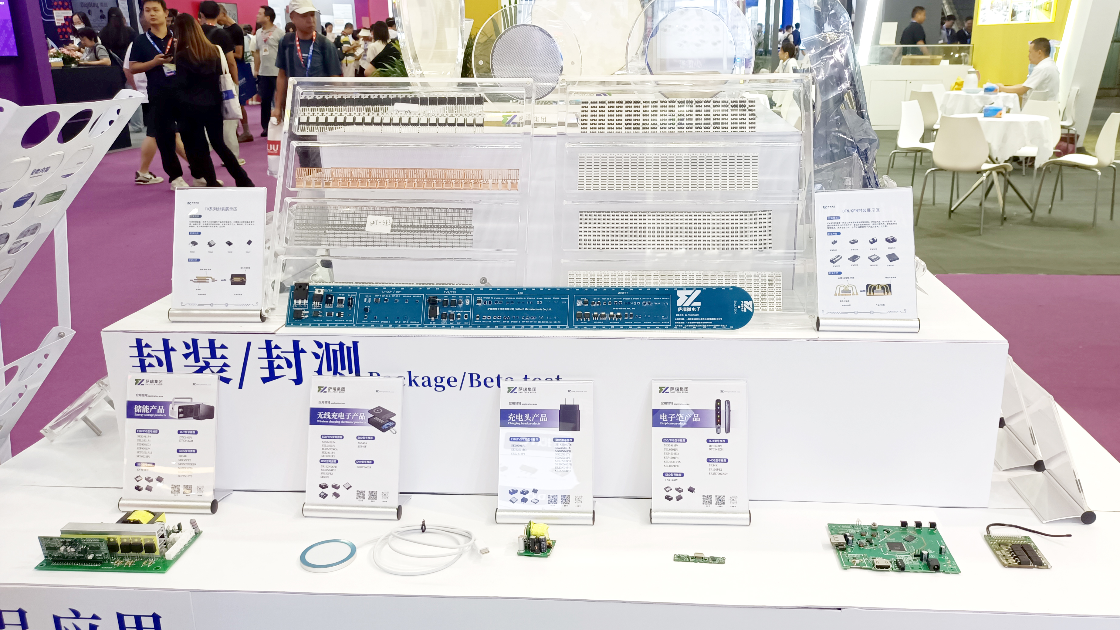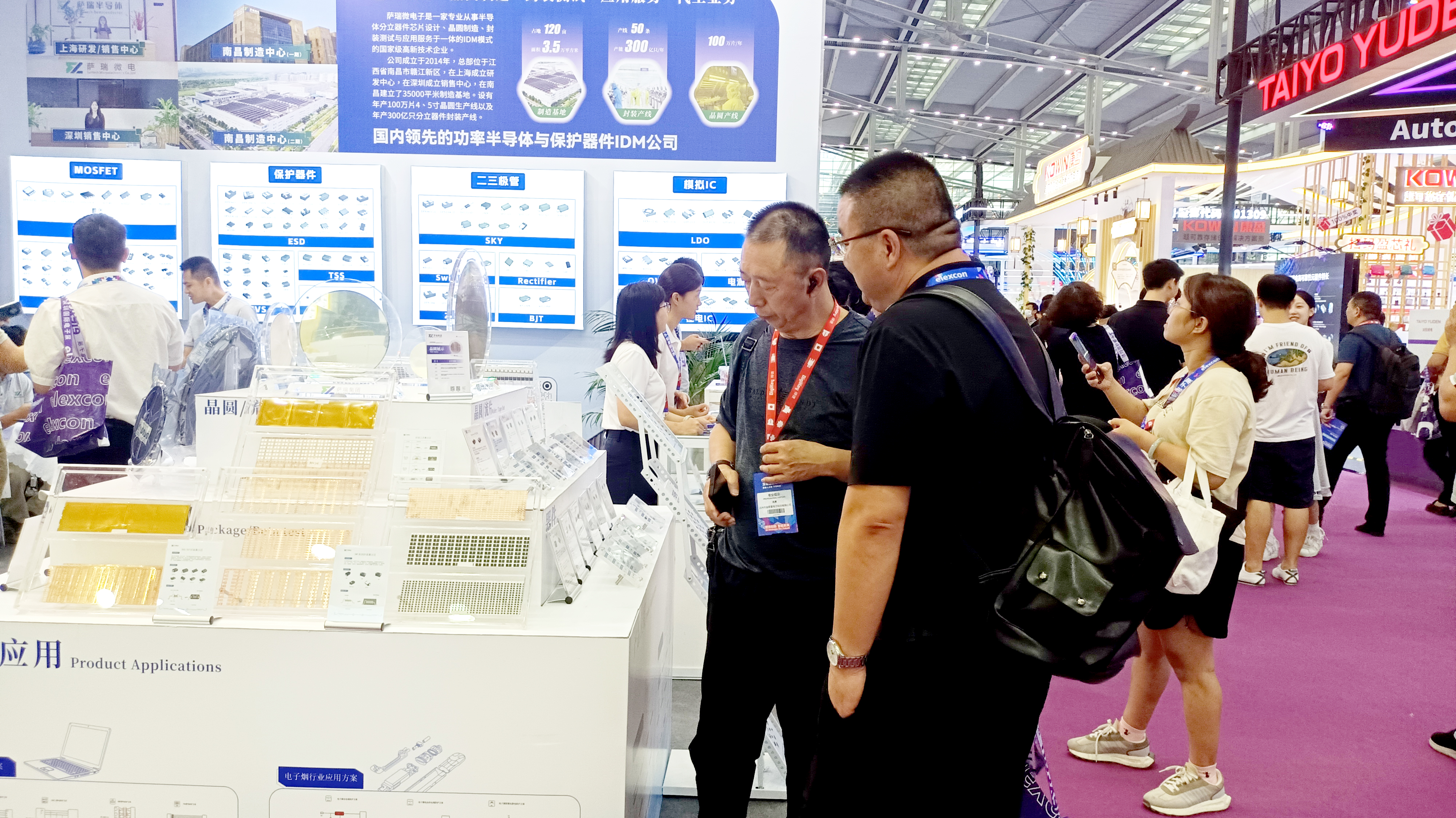 在本次展会中,taptap点点微电子展示了多款主营产品,包括保护器件、二三极管和MOSFET、模拟IC等。这些产品广泛应用于消费电子、工业控制、通信设备和汽车电子等领域,充分展示了taptap点点微电子在各个细分市场的深厚技术积累和创新能力。